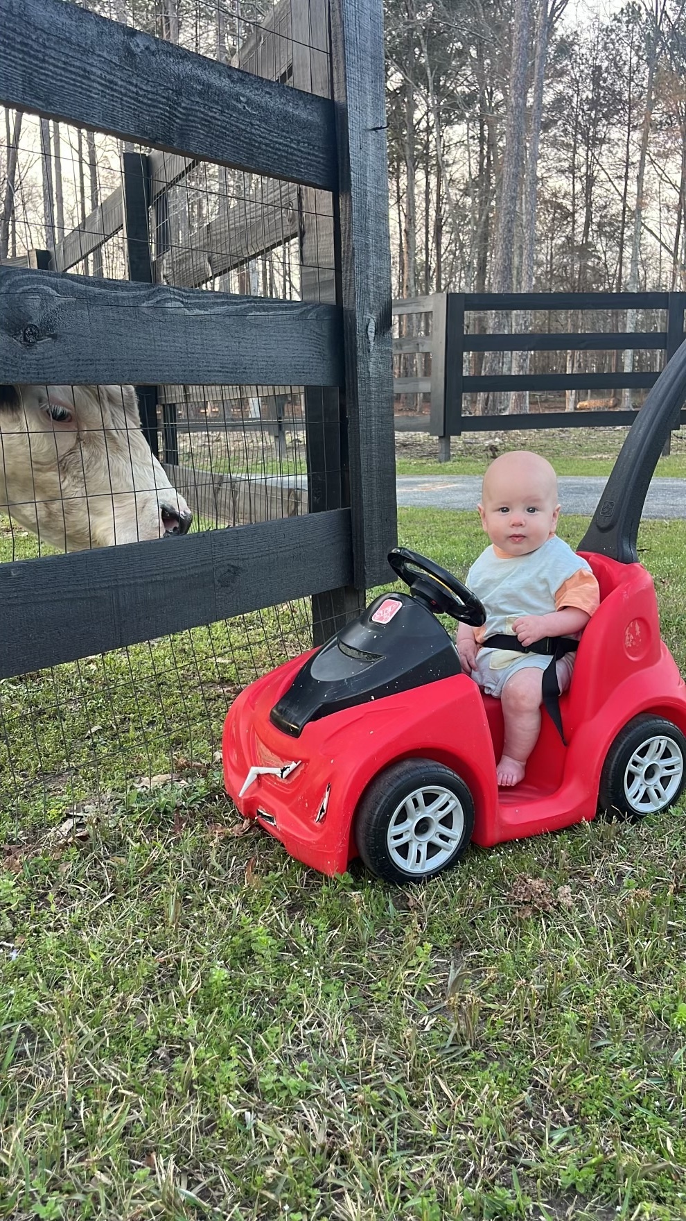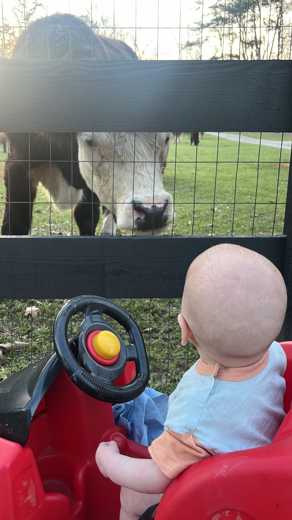 Our little buddy CJ cruised by to say hello yesterday, and of course our curious crew came right over to welcome him.